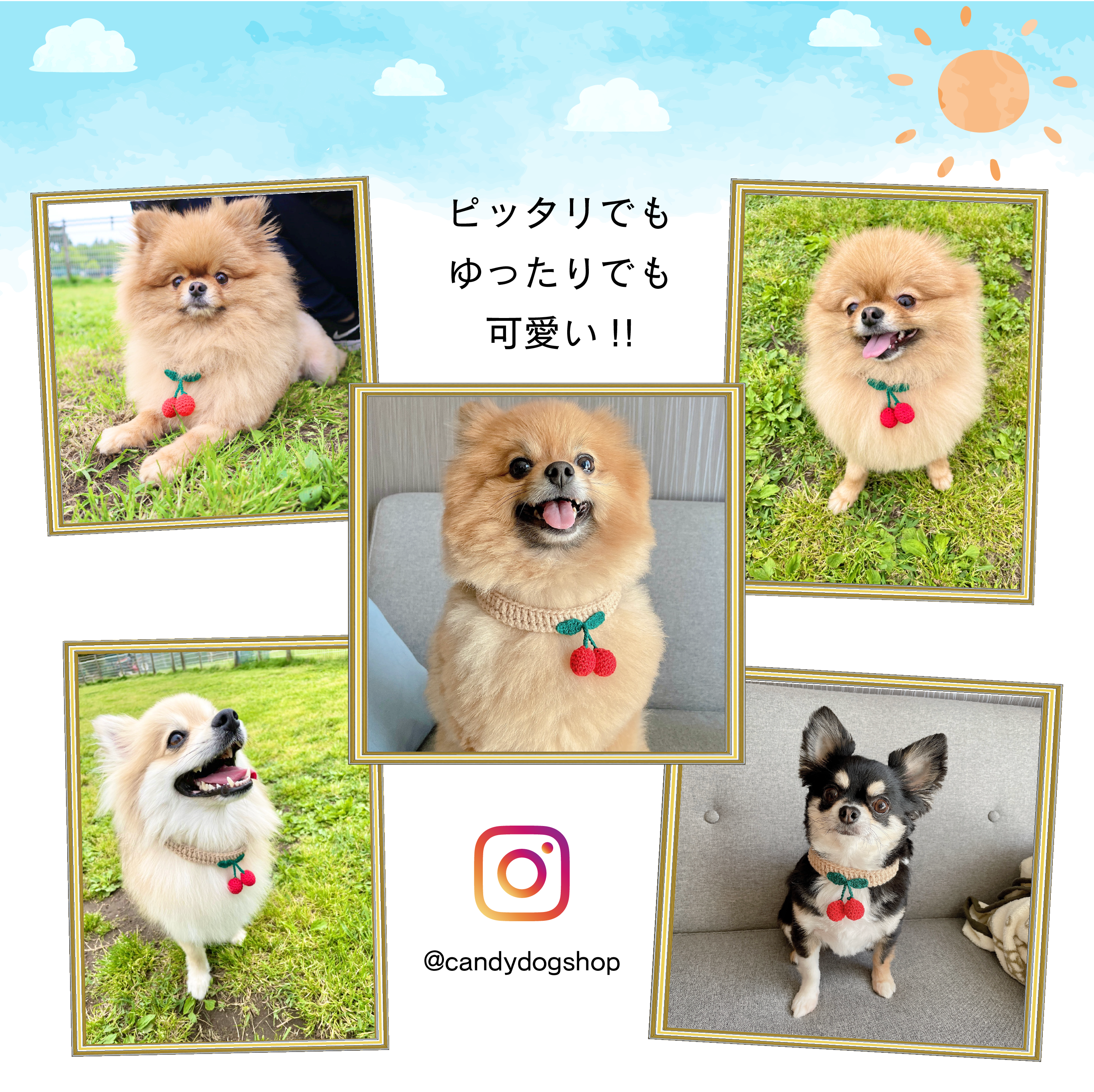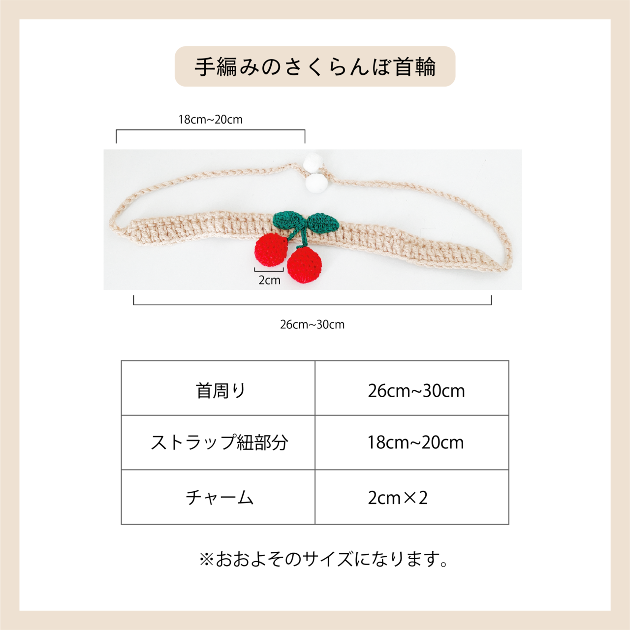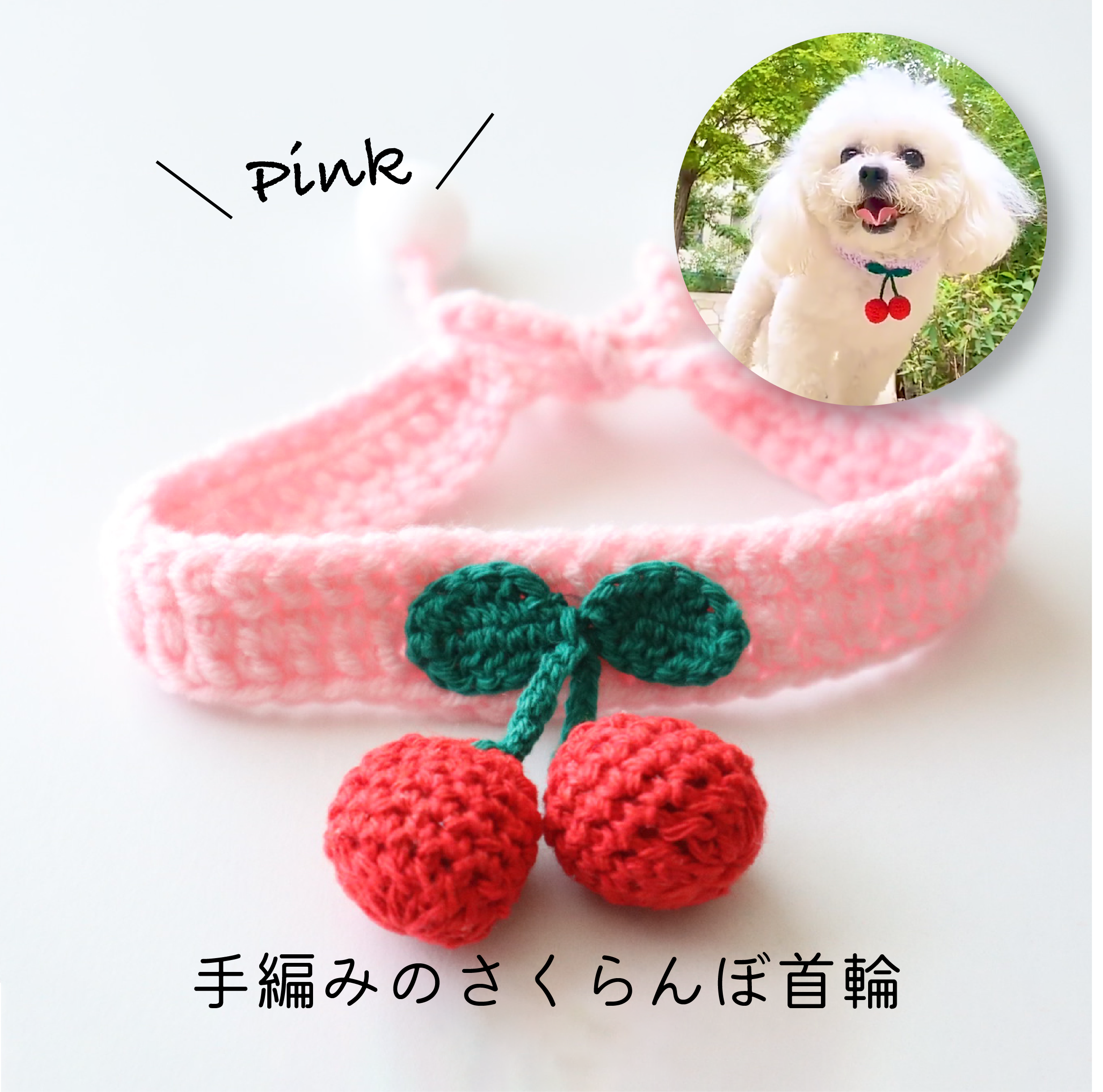 手編みで可愛い!さくらんぼの首輪【ピンク】