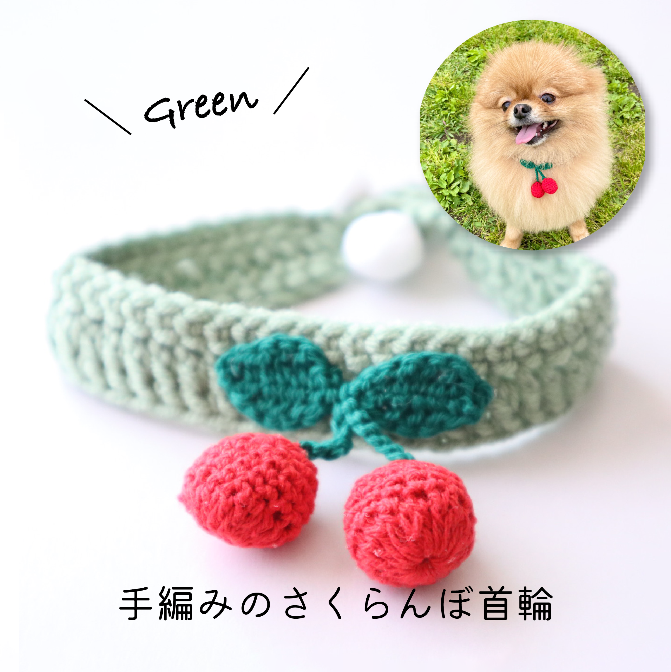 手編みで可愛い!さくらんぼの首輪
